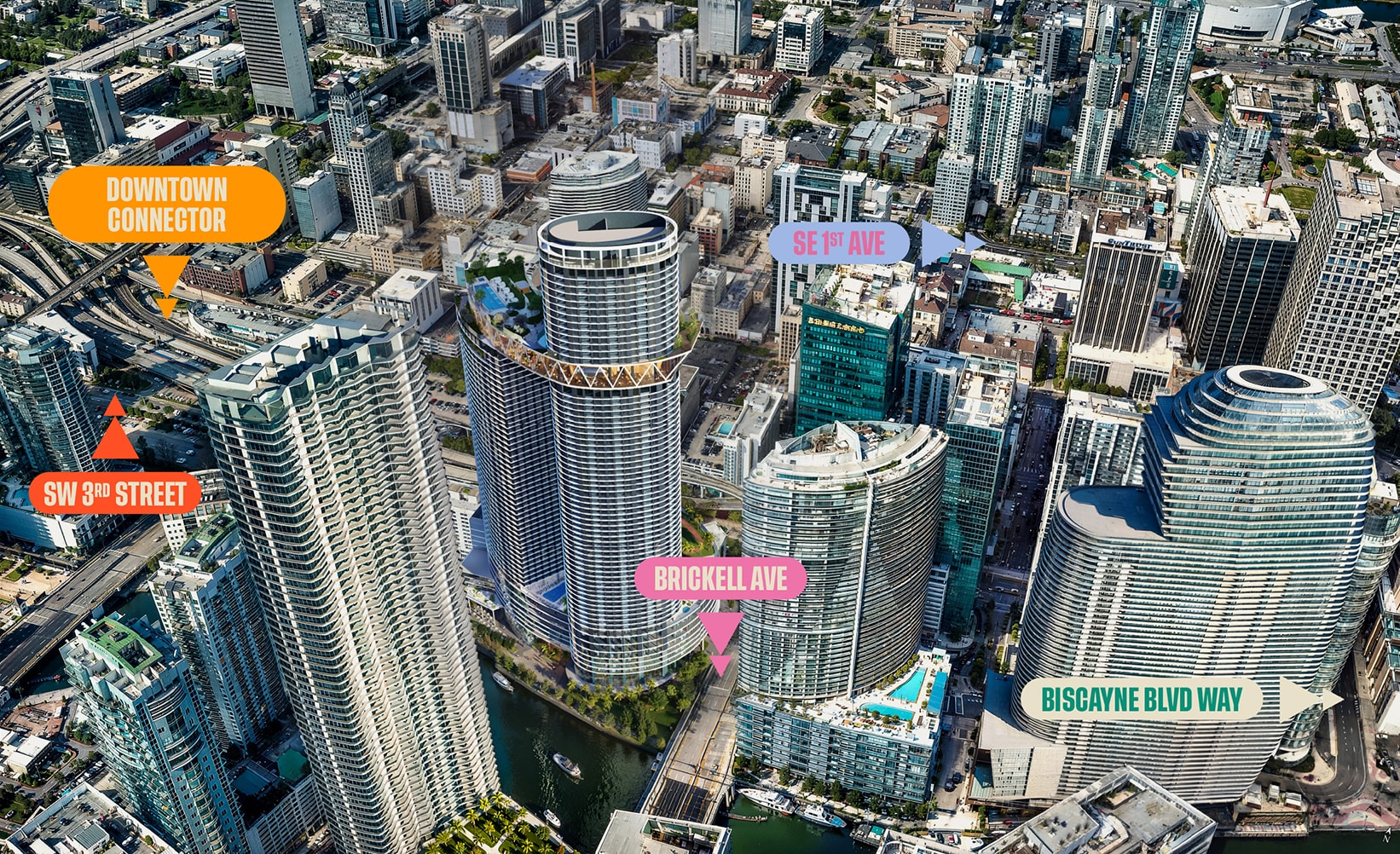 At the nexus of the Central Business District and Brickell Financial District, Miami Riverbridge will be Downtown’s favorite gathering place: At the base of our three towers is a grand riverfront plaza and some 500 feet of rejuvenated riverwalk, perfect for strolls early and late. There’s al fresco dining, activities and live entertainment. Fifty-two stories above the street, at the top of the towers, is a spectacular Skybridge for celebrations. Miami Riverbridge is 2.5 million square feet of downtown development. A landmark. The three towers of Miami Riverbridge will offer: